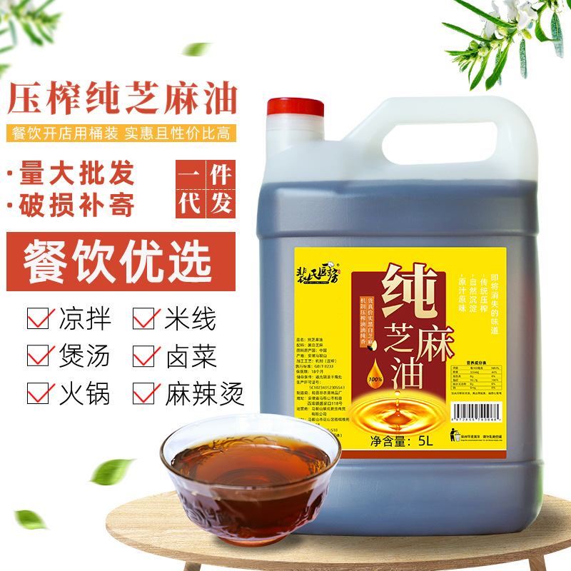 裴氏厨房 芝麻油 压榨5升纯香油 麻油 调味火锅油碟1桶
