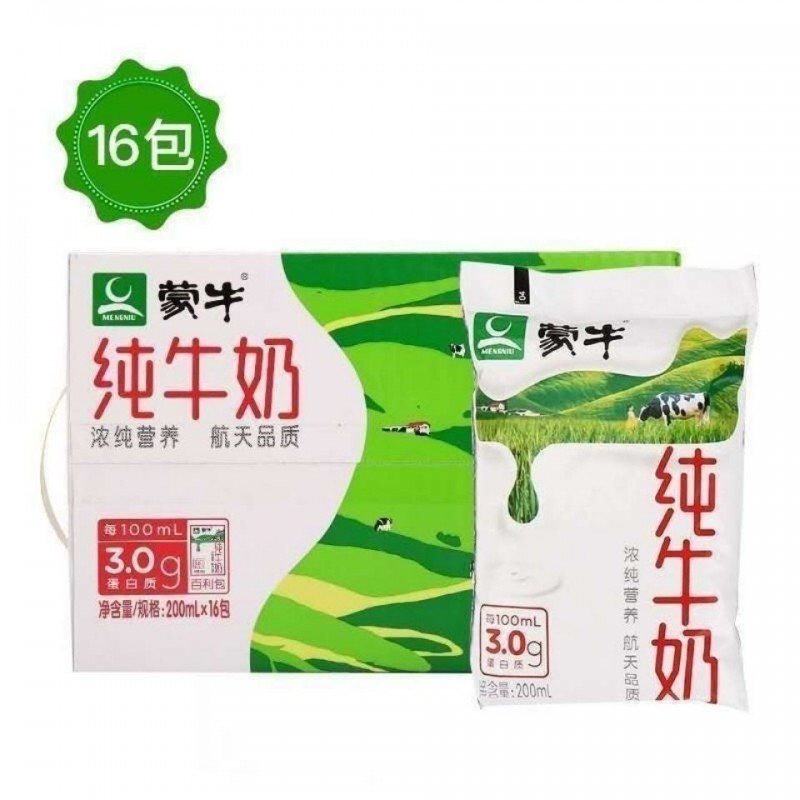 新日期蒙牛纯牛奶百利包200mL*16袋整箱原装全脂营养早餐奶